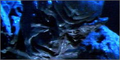 into a hideous gargoyle. Mulder manages to grab his gun. He shoots Patterson, wounding